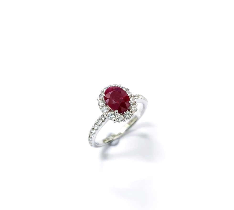 18K White Gold Ruby Stone Diamond Ring (V2289R)